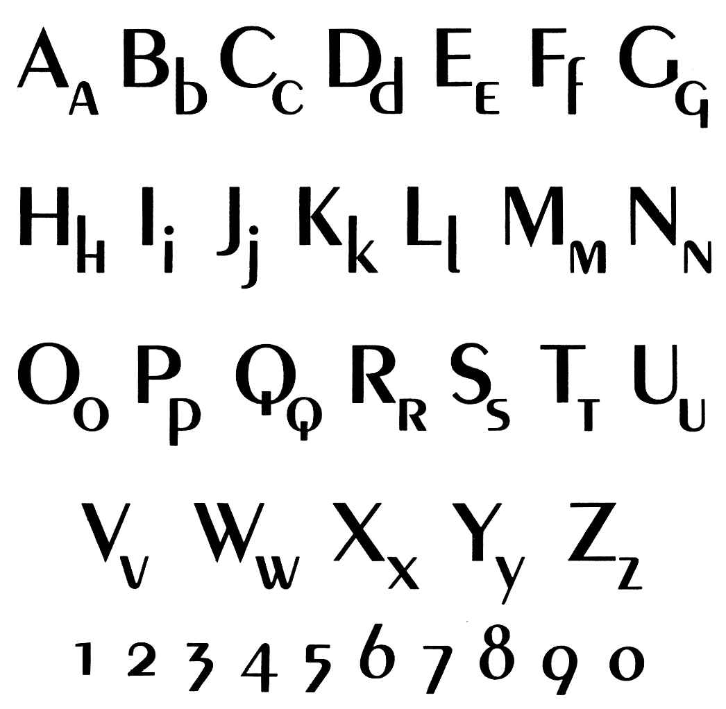 Le PeignotD'inspiration art déco, cette police est célèbre pour le fait qu'elle soit de type biforme, c'est-à-dire qu'elle n'a pas de bas-de-casse au sens traditionnel, mais qu'à la place elle combine des caractères bas-de-casse et de petites capitales modifiées. En effet, elle s'attache à revenir aux origines, lorsque les caractères latins s'écrivaient uniquement en capitales, à l'époque romaine.Cette construction particulière la rend difficilement lisible dans les petits corps, si bien qu'elle est principalement destinée à des énoncés courts et de grande taille, notamment pour l'affichage et la signalétique. Lorsqu'elle est utilisée sur support papier, elle se limite généralement aux titres.La police Peignot a été lancée durant l'Exposition universelle de 1937 à Paris, lorsqu'elle a été choisie par Paul Valéry pour les deux inscriptions qu'il a rédigées dans le but d'orner chacune des deux tours du Palais de Chaillot. Le Peignot a atteint une certaine popularité dans l'affichage et la publicité depuis sa sortie jusqu'à la fin des années 1940, mais son usage a ensuite décliné avec le succès grandissant du style typographique international et ses polices telles qu'Helvetica.